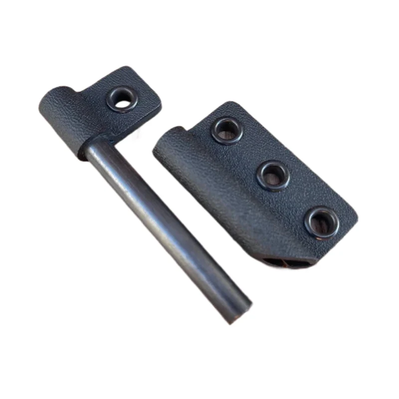 برای چسباندن چاقوی شکار به کمربند به روش کلاسیک، افقی یا عمودی، مشتریان من معمولا یک Multi-Lok را انتخاب می کنند. اگر می خواهید چاقو را کمی پایین تر حمل کنید، من یک بند نایلونی با نگهدارنده Kydex را توصیه می کنم. گیره ها یا نوار چسب برای حمل چاقو در سراسر کمربند ایده آل هستند. Velcro همچنین یک راه حل کاربردی برای اتصال چاقو به بند کوله پشتی است. علاوه بر غلاف Kydex، میتوانم یک نگهدارنده فولادی آتشنشانی را به صورت اختیاری با فولاد آتشنشانی (طول 80 میلیمتر) وصل کنم. موجود در رنگ های معمولی و خاموش مانند: قهوه ای، قهوه ای کایوت، شنی و زیتونی. اگر در مورد رنگ ها، الگوهای دیگر، خواسته های خود برای غلاف Kydex خود یا سؤالی از من دارید، فقط برای من بنویسید.